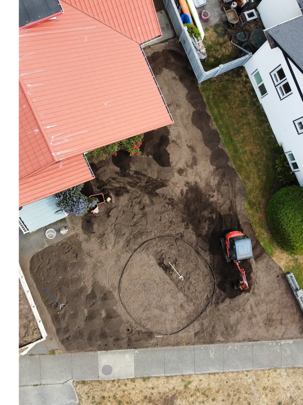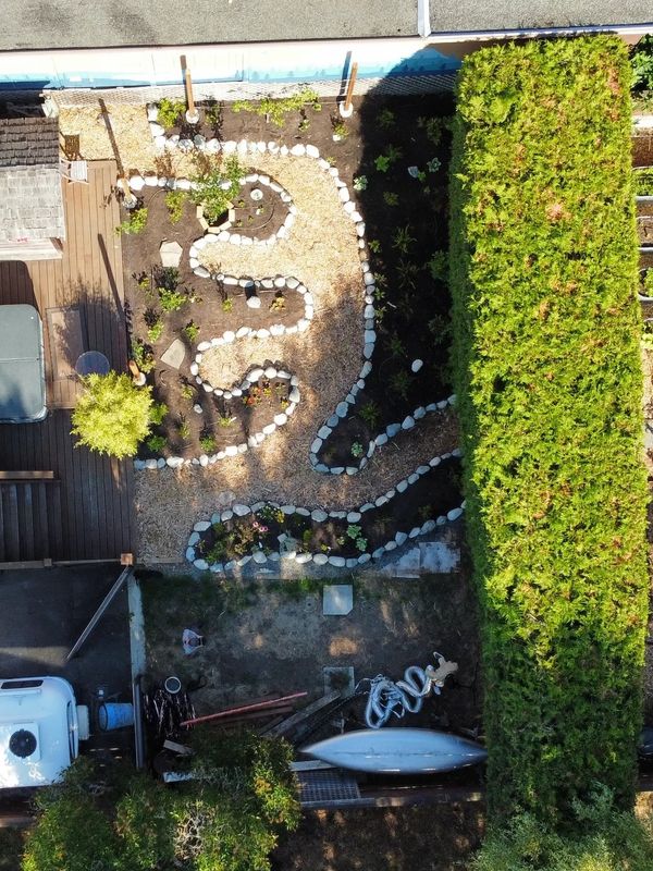 But the challenges didn't end there. The property, perched atop blasted bedrock, presented a steep slope and a unique sub-layer of sand—an environment devoid of the soil essential for plant life. We utilized ferro cement structures for both retaining walls and raised beds. Yet, the issue of extreme drainage and lack of soil persisted—a challenge that demanded creative solution. Enter a layer of wood chips, acting as a buffer between the sand and the thick layer of soil above. This approach not only provided essential nutrients for plant growth but will also help retain moisture, ensuring the survival of even the most delicate specimens.